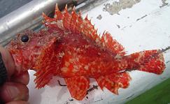 コレを皮切りに、4尾 GET。 根が荒く、仕掛けを2個ロストしたが、やはり、ゴンゴンッというカサゴの引きはおもしろい。 そして、カサゴは24cmで締め。