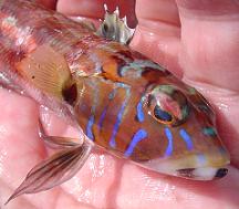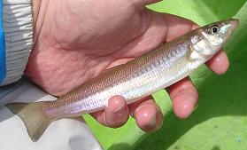 3投おきに1尾という割合。それもここのはほとんどが、20cm超え。引きもよい。 プルプルというコマかいアタリ・・・トラギス登場。 顔のアップ。。
