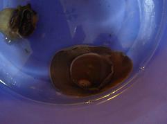 そしてツメタ貝もキープ。 バケツに入れると、ベターっと広がる・・。
