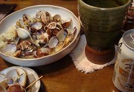 そして晩餐。 定番のハマグリ焼き アサリの酒蒸。