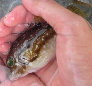 メジナ、手の間からスルリ・・。