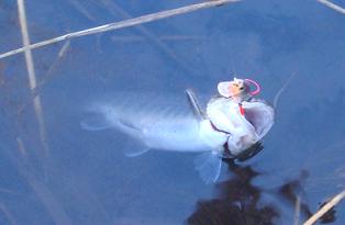 ルアーにカラんでくる魚影!! とフッッキング!! (;`ー´)o/ ̄ ̄ ̄ ̄~ >°))))彡