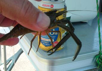 浜遊びのついでに、川で、エビ捕りである!!!