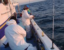 停船したてはアタリがなかったが、ここで、マスターが1尾上げる。