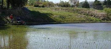 田植えの合間に 鳥井原付近でキャスト。