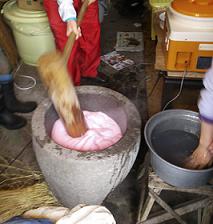 もち米を蒸し、ツキ、のし、乾燥。。。。ノして、少し硬くなったら切る(翌日)