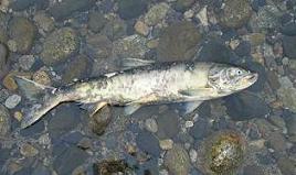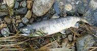 河原には、ところどころ、スポーニングを終えたと思われるサケくんたちの骸が。