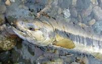 足元に産卵を終えたとおぼしき、メスが、泳いでおり・・・ せめて、1枚、写真に納める・・・。