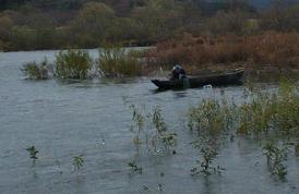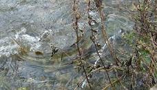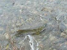 ときどき水面に顔お出すサケを確認!!