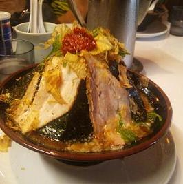 市内のらーめん屋、「麺の力こぶ 中ムラ」で「桜島盛り」をやっつけ、帰途に。