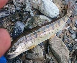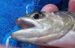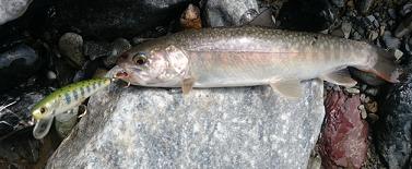 13:00 下流の釣り場へ。 またまたニジマスと遊ぶ。