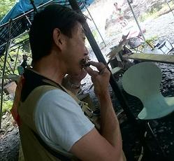 「じゃ、炭熾して焼いてるんで、30分くらいしたら来てください。」