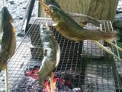 ニジマスと2,3回遊んだ後、 12:00 。軽くランチタイム。
