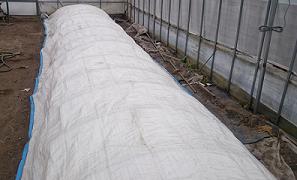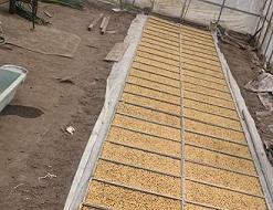 ビニールハウスにプレート用の床を作り、穴あきビニールでカバー。
