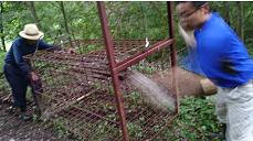 田んぼの脇にイノシシが、出るというので、町の職員の方が檻の罠を仕掛けに来てくれた。