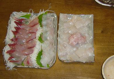 皿。 イナダとヒラメの刺身を盛ってみる。